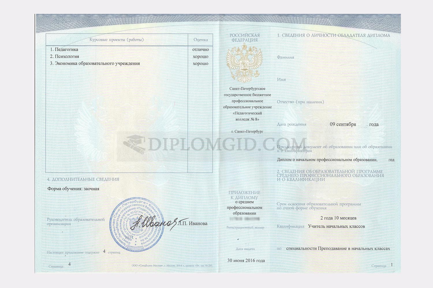 Образцы дипломов о среднем и начальном образовании